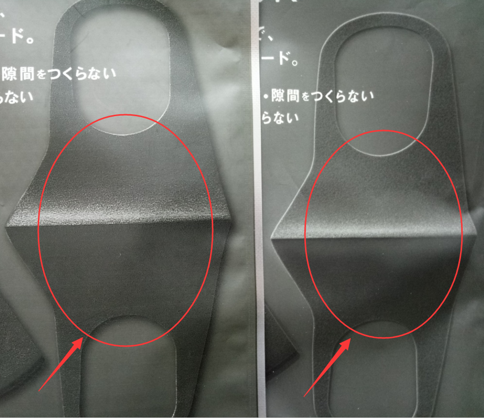 仿品口罩圖案是很粗糙,為了仿造海綿質(zhì)感做出來的效果反而有一種顆粒感。