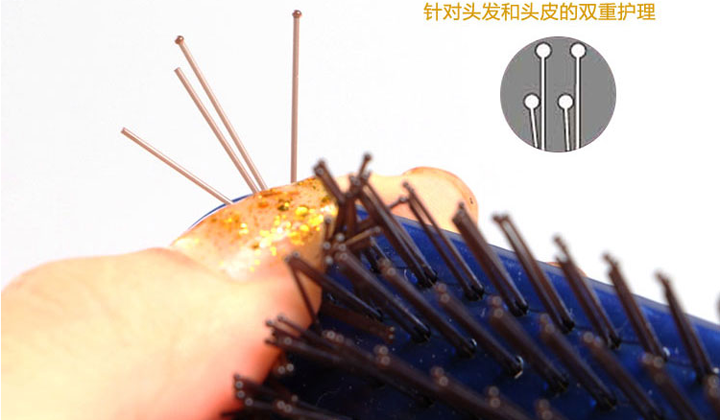 4、梳齒末端獨特小圓頭設(shè)計,不傷頭皮,促進(jìn)頭部皮層血液循環(huán),暢通經(jīng)脈。